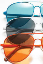 Alain Mikli has released four new styles in bold hues such as red, yellow, and purple. Each frame, (from left) A0507-14, A0407-09, A0341-22, and A0507-06, is hand-crafted in acetate. From bold beveled edges to softer semi-rimless shapes, the frames have great detail and personality. The four unisex frames wholesale for $157 each. For more information, contact Alain Mikli at 800-829-8032.