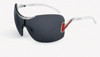 Sàfilo Group has introduced three new sunglass styles on behalf of its Valentino collection to support the launch of Valentino's newest fragrance, "V." Inspired by the new fragrance bottle, all three styles feature a new logo: A fiery red enamel "V" in the shape of a bold, unmistakable brushstroke. The Valentino 5411/s is a Jackie O- inspired sunglass in white or shiny black with a dark gray lens. This style wholesales for $110. Valentino 5412/s (shown) is an oversized wrap shield with standout style. The red enamel "V" logo is surrounded by hand-set crystal or black diamond Swarovski crystals and serves as the endpiece that connects the frame front to the slender black or white plastic temples. The VAL 5416/s is simply a smaller version of this shield. Both 5412/s and 5416/s are priced at $140. For more information, contact Sàfilo at 800-631-1188.