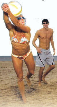 Beach volleyball is popular among athletes of all ages. These players are wearing Boll� sunwear to protect their eyes |
