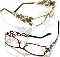 The IRIS collection comes in four shapes, each available in six different colors, all in stainless steel. Ornate, cut-out temple designs, made with the help of a laser, are comprised of patterns inspired by champagne bubbles and flower vines. According to the company, these fun frames are meant to symbolize joy and a sense of ultra-femininity and are targeted to female wearers. The construction of the decorated temples is such that the hinge is hidden and the pattern flows from front to back. When worn, the temple decorations appear to float alongside the face, and even sprinkle shadows of bubbles or flowers onto the cheeks.