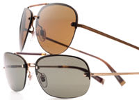 "My design philosophy is about looking back to reach forward. Each season's fashion collection is made with unique and individual details that come about through hand aging processes and whip-stitch finishes. In keeping with this idea, the eyewear collection brings together hand-crafted design elementsfine, filigree detail on bridges, stamped end pieces and templeswith modern silhouettes that use clean aerodynamic lines." (Shown: V103, top, and V102)