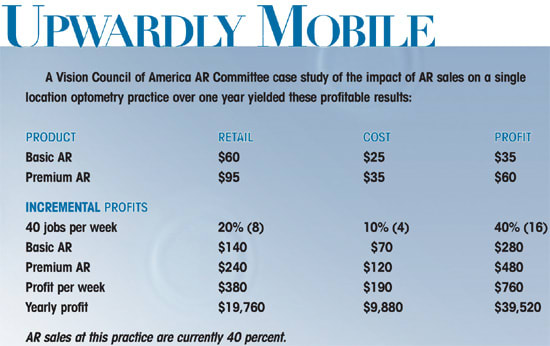"Sometimes patients will pass on AR at the initial sale, then return two months or so later wanting AR," explains Joanne Sikorski, office manager at Glen Ellyn Vision Center. "When that happens, we remake the lenses and only charge the patient for the anti-reflection."