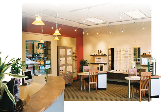 Decor statement: "You'll feel right at home here and get state-of-the-art eyecare, too."