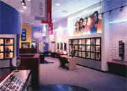 Located in a busy Southern California shopping mall, Vision Center is set up to grab attention with a clean contemporary design and punchy colors. The beautiful models in a photo display make the multicultural, fashion-conscious target market think: "That's me. This place must have what I want."