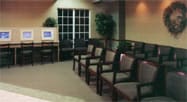 The four male partners in this practice asked for a masculine look that would be welcoming to female patients. Cherry crown moldings and chairs, sage walls, and spruce green accents evoke a country club feeling that the partners and patients love.