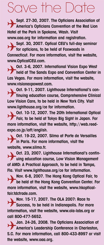 In order to support and inspire the next generation of optometrists, Transitions Optical, Inc., is sponsoring the Optometry Scholarship Program to reward 10 outstanding students for their drive to promote healthy sight to patients. Supported by the Transitions Healthy Sight for Life Fund, the program will encourage optometry students to create projects exploring "Healthy Sight Counseling." Scholarships will be awarded in the amount of $500 each to students who demonstrate a clear understanding of the integration of vision care, vision wear, and education into everyday practice. Transitions announced the scholarships at the Association of Schools and Colleges of Optometry (ASCO) breakfast, which was held during the American Optometric Association's annual Optometry's Meeting.
