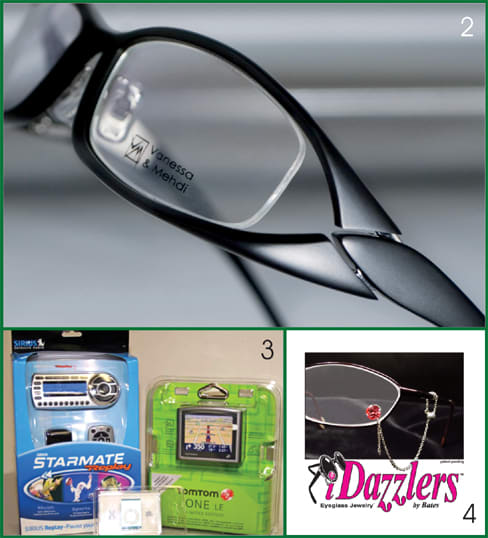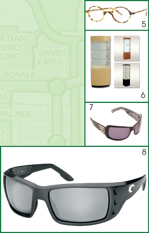 5 Best Image Optical presents the latest from its original collection, Dolabany Eyewear. Consisting of both metal and zyl frames, the models offer a combination of classic designs and rich coloring that makes this collection trendy and the ideal choice for every occasion. Shown here, style Moscow. Best Image Optical: 800-688-7661, www.bestimageoptical.com Booth: 9067 6 Bright Display announces the newest addition to its product line—showcases. The showcases have been designed to provide eyecare professionals with an affordable, attractive display solution that also provides proper lighting for eyewear. Available in a variety of veneers, these showcases can coordinate with all décors. Bright Display: 800-777-0734, www.brightdisplay.com Booth: 9046 7 Cinzia Designs will present two distinct lines of readers and sunwear: Cinzia, a high-end, sophisticated collection, and Trendies, a fun line meant to be accessible to all stylish consumers. Cinzia complements its readers and sunglass collections with coordinating Zia's, eyewear necklaces that are unique pieces of handmade, wearable art. Cinzia Designs: 800-701-6765 www.cinziadesigns.com Booth: G19025 8 To celebrate Costa Del Mar's 25th anniversary, it is introducing its latest evolution in polarized performance sunwear—the Costa 580™ silver mirror lens. The lens provides higher light transmission, unmatched definition, and color saturation for outdoor adventures in variable light environments. A show special involves free sunglasses and a backpack. Costa Del Mar: 800-447-3700 www.costadelmar.com Booth: 18107