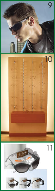 9 Eastern States Eyewear will be introducing a bevy of new sunwear and ophthalmic styles in its Cazal, Police, Jaguar, Diva, Exces, and Thierry Mugler collections. The collections offer something for everyone, from stylish glamour to cutting-edge design, at a variety of pricepoints. Eastern States Eyewear: 800-645-3710 www.eseyewear.com Booth: 15025 10 Ennco Display Systems will be showcasing its new LumaWall, a display standing 83" tall backed by fluorescent lights to give it that attention-getting glow. You can choose standard white lighting or go hip with colored lights. Several finishes and a variety of rods, from metals to acrylics, are available. Ennco Display Systems, Inc.: 800-833-6626 www.ennco.com Booth: 9074 11 Eye Designs is displaying The Wave™ 360° rotating frame holder, the latest addition to The Wave line of frame holders, which allows frames to be displayed from varying angles (90°, 180°, and 360°) and can highlight the full frame view, partial temple view, or full temple view. The locking holder is offered with an optional sign attachment. Eye Designs: 800-346-8890 www.eyedesigns.com Booth: 12075
