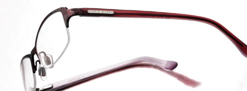 | Rx: OD + 0.50 sph. OS +0.50 sph ADD +2.50 Lens Recommendations: Polycarbonate, AR, short-corridor PAL, edge polish, photochromic optional. Trivex lenses with this semi-rimless style will fabricate well and wear safely in this light Rx. AR offers the best appearance and visual performance. The narrow B measurement calls for a short-corridor PAL. An edge polish enhances the sleek frame style. Photochromic lenses for an added fashion and function punch. Frame Highlights: This semi-rimless features a mix of metal and acetate construction. Etching work at the corner of the eyes distract from any smile lines that might be going on underneath, and kind hues of purple with a matte finish compliment complexions. |