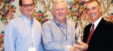 Doug Hepper, president and CEO of Vision-Ease Lens, shown center, accepts an award from the Chief Executive Network