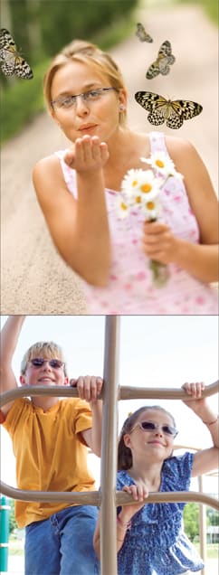 Let parents know that kids' active lifestyles call for product safety and durability. Image courtesy of Transitions Optical