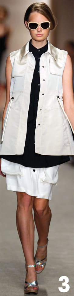 3 Derek Lam Eyewear from Modo was also featured on the runway at Fashion Week. The designer's looks were complemented by sunwear. Shown here in shades of gray is style SS09. For more information, visit www.modo.com. |