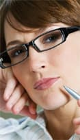 "We usually suggest a full plastic frame for high-powered Rx's," Nelson affirms. "They're so fun now! That Ugly Betty, geek chic look is our number-one choice for high-Rx patients."