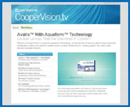 | A new CooperVision patient video is available at http://coopervision.tv, the company's online educational resource. The new video, titled "Avaira with Aquaform technology: Contact Lenses Drenched in Comfort," describes the benefits of the two-week silicone hydrogel lenses, which use a low-modulus, naturally wettable material. Patients can view the video in-office or at home. |