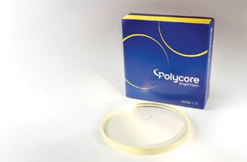 POLYCORE OPTICAL 1.71 index semi-finished SV Polycore Optical has moved into high-index materials with the introduction of the 1.71 index semi-finished single vision line. Polycore 1.71 allows labs with the appropriate tooling to process 1.71 lenses in-house, avoiding high processing fees previously associated with these materials. With a high tensile strength, Polycore 1.71 lenses offer superior drill-mounting capabilities. The lenses also have a higher Abbe value than many other ultra high-index materials and 11 available base curves. For more information, call 888-645-7788. |