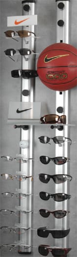 Eye Designs' patented Versa Merchandising System is a versatile eyewear display system that provides flexibility for displaying frames and point-of-purchase materials. The three-dimensional system consists of a mounting panel that displays a variety of interchangeable components to support frames, shelving, signage, and accessories. Some accessory components include lens display, detachable mirrors, interchangeable graphic system, unique lock box display, shelving, single or multi-tiered frame and case holders, swivel clip, chain holder, mini sign holders with lifestyle graphics, and hingeless frame clip. For more information, visit www.eyedesigns.com.