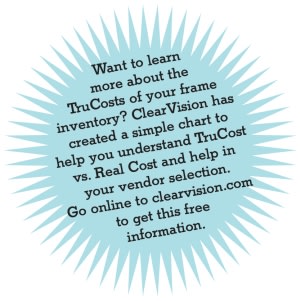 TruCost is the bottom-line cost that takes into account the policies of the vendors with whom you do business. For example, do your vendors consistently have frames on backorder? This inconvenience may actually cost you money in lost patient sales.