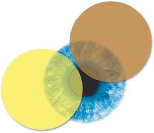 ■ YELLOW Lenses with yellow filter/tints are the first option for opacities or distortions such as cataract or corneal irregularities that cause glare by scattering blue light.
