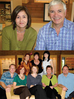 | Top: Drs. Harmon and Hilderand. Bottom: The Sonoma Eyeworks staff |