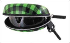 3. Astucci's on-trend plaid hard case in eye-popping neon green features a clip that can attach to any belt loop or backpack for on-the-go eyewear protection;