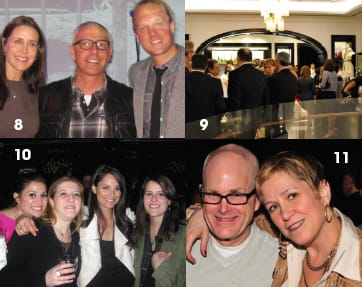 | 1-2. Eyes on New York Gala co-chair Mike Daley and co-chair VSP's Rob Lynch with honorees Marchon's Larry Roth and Al Berg; 3. OWA's Grady Culbreth presents the Pleiades award to Christie Walker; 4. Event sponsor Satisloh's Larry Clark with Live's Karen Zappia at the EyeRock Concert; 5. The Vision Council's Eve Zartman-Ball (l) and guest at the OWA event; 6. Matt Morris performs at the William Rast party; 7. Charmant Group's reps at the Puma launch party; 8. Andrea Sobel and Nicks Ericsson of the William Rast brand with Viva's Frank Rescigna; 9. Guests mingle at Safilo's Tommy Hilfiger party; 10. Enjoying the Oliver Peoples' party; 11. Event sponsor Luxottica's Dr. John W. Lahr and guest at EyeRock |