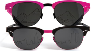 | Heading up our Cut/Airline Series in Titanium is CPH, the acronym of our hometown Copenhagen. The result of our collaboration with the exclusive furniture company Fritz Hansen, CPH features a laser cut of the skyline from Denmark's capital, echoed in a special edition of Arne Jacobsen Swan chairs. Launched as sunglasses during design week in London last year, our optical version features for the first time two colors on the outside of the frame—a solid colored front in black and temples in a solid matte silver color. Also included are luscious color combos like neon pink inside dark brown and powder blue inside white-hot frames. —Emma Migliorini Kristensen, PR & communications manager, Orgreen
