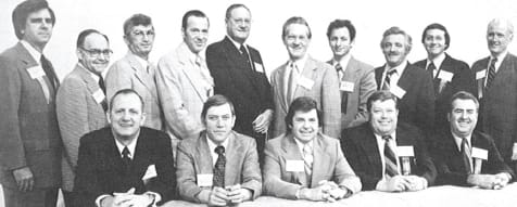 Top: Attendees of the Association of Independent Optical Wholesalers Clambake, June 26, 1952, in Rehoboth, Mass.; Middle: A. Reed McIntire, AAWO's first president; bottom: the first elected board of directors of OLA