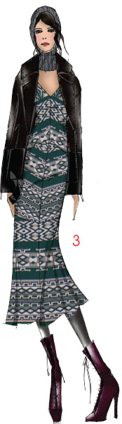 Designer Inspiration: Fashion veteran Nicole Miller found her fall 2012 inspiration from the mystical and funky music of the ‘70s. Titanium is her signature neutral color and she is pairing it abundantly with greens throughout her collection.