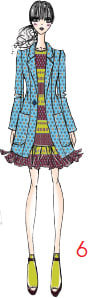 Designers shown on this page: 3. Charlotte Ronson; 4. Peter Som; 5. BCBG by Max and Lubov Azria; 6. Nanette Lepore. Men's look above right: Tommy Hilfiger