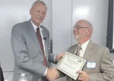 Ellis Potter, president of VOSH/International, presenting Don Kuehn, OD, with the 2011 Humanitarian of the Year award