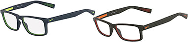 The Nike Flexon Hyper collection includes two youthful, wearable shapes, Nike 4258 and Nike 4259. Both styles feature a waffle tread pattern and cantilevered hinges where splashes of accent color reveal dual-injected inner frame material. The same accent color also lines the lens grooves.