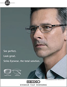 Visit the Seiko booth to learn about free-form progressive (back-surfaced with wider fields) and single-vision lenses in all popular materials, as well as Seiko Titanium frames in contemporary styles.