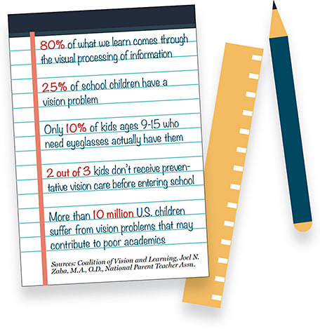 A child’s ability to learn is severely compromised when he goes through school with an undetected vision problem. Here’s a look at some of the research