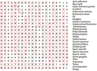 Free-form manufacturing allows lens companies to overcome the design limitations of traditionally fabricated lenses. Patients benefit from free-form lenses by experiencing better vision as a result of the customization and precise optics made possible by digital surfacing. Try to find all of the terms in this puzzle that relate to free-form technology.