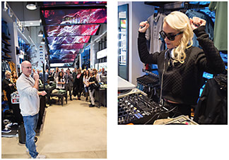 Left, Oakley’s Colin Baden celebrating at the Fifth Avenue flagship store; above, DJ Taryn Manning gets the party started with upbeat music