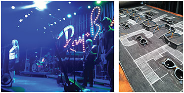 Left, Blondie takes the stage of Ray-Ban’s District 1937 event; right, denim artistry on display