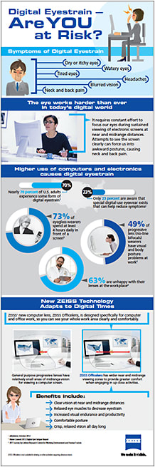 Carl Zeiss Vision has released a consumer-oriented infographic designed to increase awareness of the symptoms of digital eye strain to a broad range of media outlets. To date, the infographic has been picked up by numerous publications with more than 26 million in combined readership.