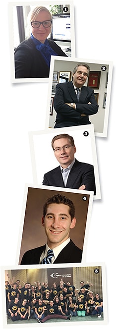 1. Rebecca Giefer, MODO Eyewear; 2. Dick Russo, Safilo; 3. Glenn Rusk, Safilo; 4. Jeffrey Sonsino, O.D., FAAO, SynergEyes; 5. University of Montreal College of Optometry celebrates its winning donation to the OGS World Sight Day Student Challenge