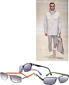 • Men’s lenses get flashy with mirrored finishes that go beyond gold and silver into bright pops of color including orange, green, and blue.