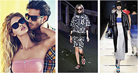 this spring, style pops with fresh colors, floral prints, neon hues, over-the-top embellishments, and cool cuts like wide-leg trousers and cropped jackets. Eyewear follows in step with sorbet colors, color-blocked and retro looks, stunning embellishments, and graphic, pop art patterns.