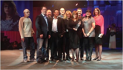 The staff of Clarus Optical accepts the ECP of the Year award from Transitions Optical, Inc.