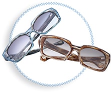 Greens and blues continue to brighten up eyewear with shades reminiscent of land and sea, often with color accents that provide a touch of elegance to light-hearted hues.