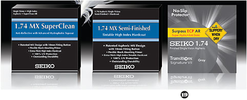 1.74 Finished Single Vision Transitions VII with Surpass Easy Clean Plus AR are the thinnest and lightest finished photochromic lenses available, according to the company. Available in gray, they have super hydrophobic and anti-static protection.