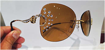ON DISPLAY. Samples of eyewear with gradient tints, cool lens shapes, bevels, and embedded gemstones should be out on display to whet the imagination.