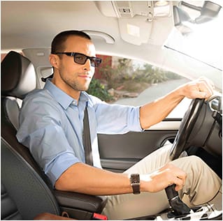 Transitions Drivewear lenses were the first photochromic lenses designed to activate both behind the windshield of a car and outdoors. Transitions Drivewear lenses change color based on the current driving conditions in order to automatically enhance the driver’s vision.