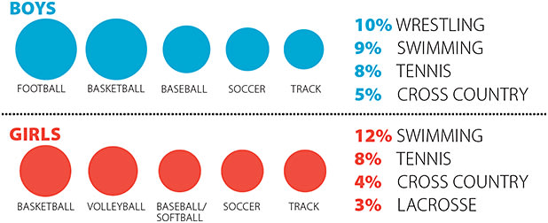 PERCENTAGE OF STUDENTS WHO SAY SPORTS ARE A BIG PART OF WHO THEY ARE