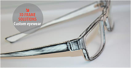 Patients can select from a growing library of frame styles, colors, and design finishes. Each frame is made from ABS plastic, nylon, various metals, and other new materials that are evolving with 3D printing technology.