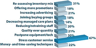 FACED WITH CRUNCHED MARGINS AND INCREASING COMPETITION FROM THE E-COMMERCE WORLD, ECPs say they are looking at new ways to become more competitive. An impressive percentage of ECPs (67%) say they are focusing on stressing customer service as a way to fine-tune their competitive edge today, according to the Annual Market Trends Study. Personalized customer service is one way brick-and-mortar retailers are defining themselves—and what they can offer that online retailers cannot.