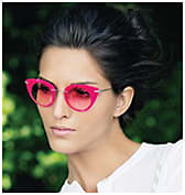 It’s hide and sleek with integrated spring hinges in Tura’s TITANflex style 821025. The extra give reassures patients that their frames have some give while providing an extra splash of fitting comfort.