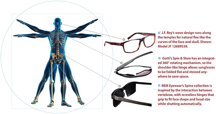 The human body is a marvel of function…bending, twisting, and moving fluidly to accomplish even the most basic task. Hinge designers have taken inspiration from anatomy to make eyewear function better and provide wearers with greater comfort.